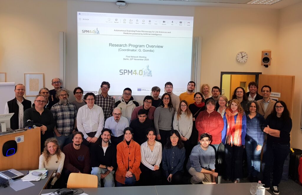 Los investigadores y socios del consorcio SPM4.0 se reunieron en Berlín del 17 al 21 de noviembre para una semana dedicada a la formación, la coordinación y el intercambio científico. El evento, organizado por Charité-Berlín, combinó el primer curso de formación del proyecto con su reunión intermedia, lo que supuso un importante paso adelante para esta Red Doctoral Marie Skłodowska-Curie (MSCA-DN). La red SPM4.0 está dirigida por Gabriel Gomila, profesor de la Universidad de Barcelona (UB), ICREA Academia e investigador principal del grupo de Caracterización Bioeléctrica a Nanoescala del IBEC, y cuenta también con la participación del grupo Infecciones bacterianas: terapias antimicrobianas, dirigido por el investigador del IBEC y la UB Eduard Torrents.
