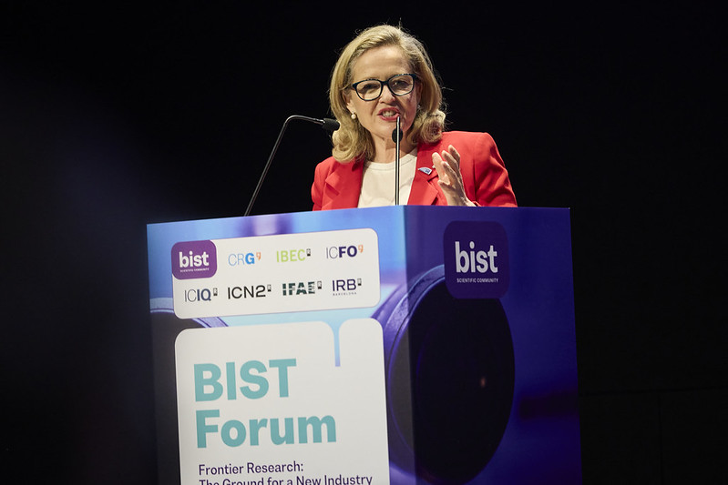 Junto a Calviño, participaron en el debate Teresa García-Milà, presidenta del Cercle d’Economia; Carolina Aguilar, directora ejecutiva y cofundadora de INBRAIN Neuroelectronics, una empresa derivada del ICN2; y Gábor M. Lamm, director general de EMBL Enterprise Management Technology Transfer GmbH. La sesión fue moderada por el director general de BIST, Eduard Vallory.