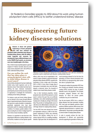 SciTech Europa Quarterly publicó una entrevista a Federico González, investigador senior del grupo de Nuria Montserrat , sobre el trabajo que realiza el equipo investigador con células madre pluripotentes humanas (hPSCs) para comprender mejor la enfermedad renal.