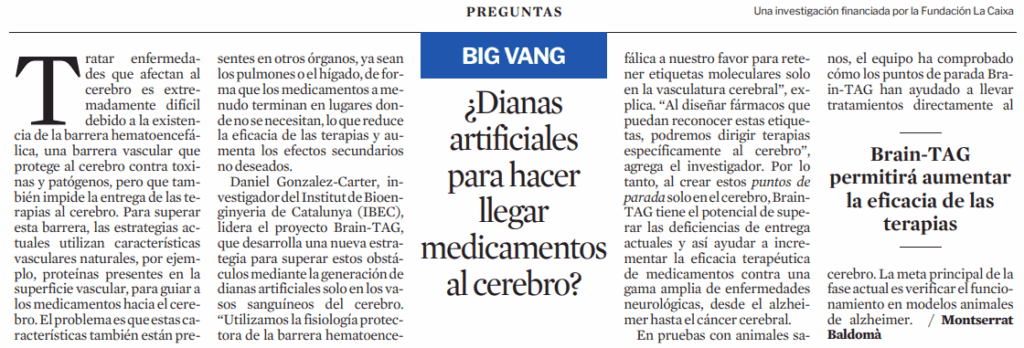 LA VANGUARDIA: ¿Dianas artificiales para hacer llegar medicamentos al cerebro?
