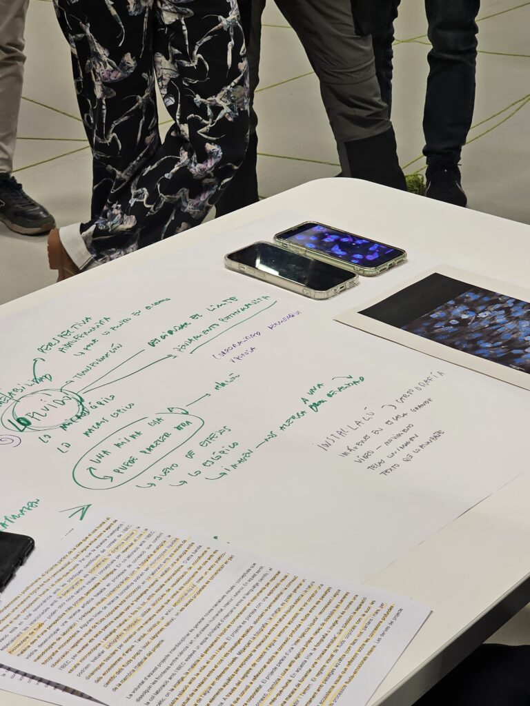 “What emerged was not just a fusion of disciplines, but a true space for mutual listening: while the teams shared the complex processes they were investigating—membranes, nuclei, tissues in motion—I provided a poetic interpretation of these phenomena.” – Mireia Casanyes.