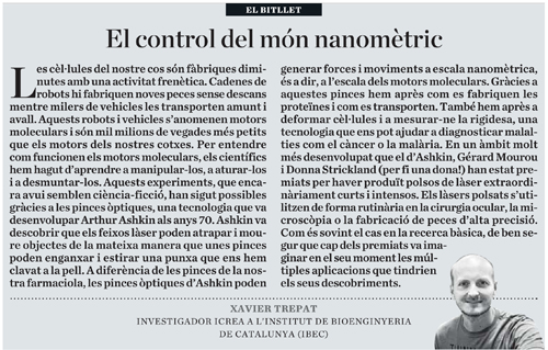 IBEC group leader Xavier Trepat penned a short article for ARA magazine in which he discusses the research of Arthur Ashkin, Gérard Mourou and Donna Strickland, winners of the the Nobel Prize for Physics.